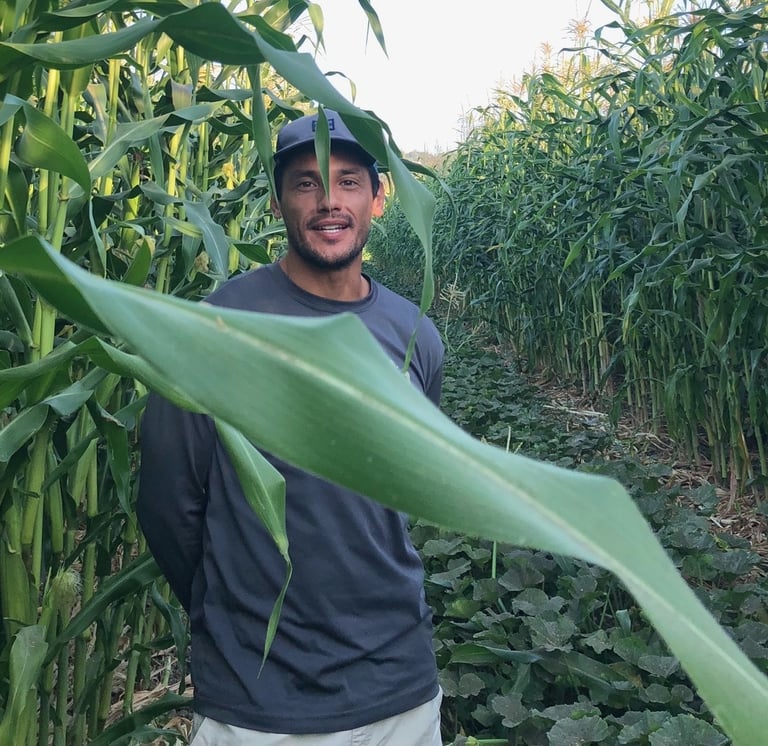 He’s worked in the "green industry" since he was 15, beginning his journey at the USDA Agricultural Research Service. After years of experience in arboriculture, plant health, and sustainable landscapes—including starting a community farm in Oʻahu—Gabe realized something powerful: if it’s possible to grow a food forest in Hawaiʻi, it’s possible here, too. And that’s exactly where Gabe learned mālama ʻāina — care for the land — a central principle in Hawaiian culture that he now carries into Fruit & Flower EcoFarm.
